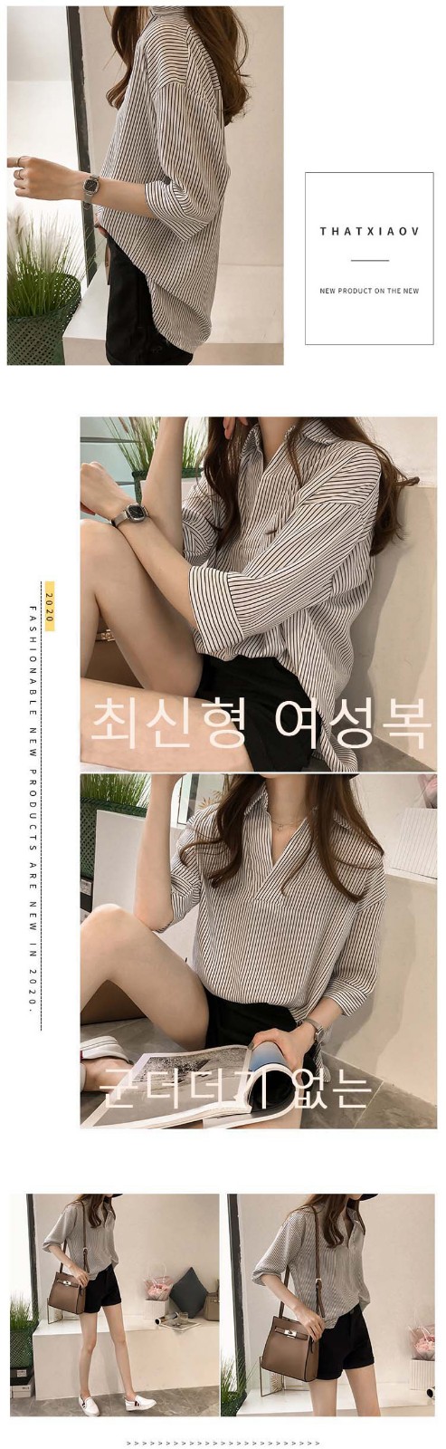 半小時前新品上市,勁爆特殺!全場大放送,單件低至NT$432,2020新款夏裝中長款韓版寬松顯瘦條紋襯衫女七分袖,廠家直銷,超值優惠,買到賺到!過後漲價! - 【超級氣質條紋襯衫】任選1件 僅需NT$899