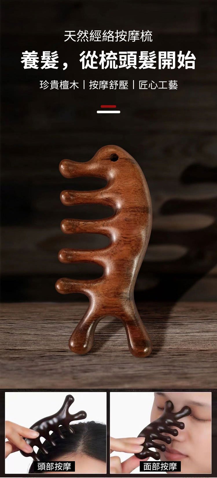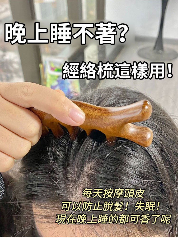 2分鐘前天然檀木美容經絡按摩梳 ◀頭臉按摩◀疏通經絡◀刮痧排毒 按摩穴位促進排毒,面部提拉緊緻 - 【緩解頭痛,按出健康】5入組HK$346
