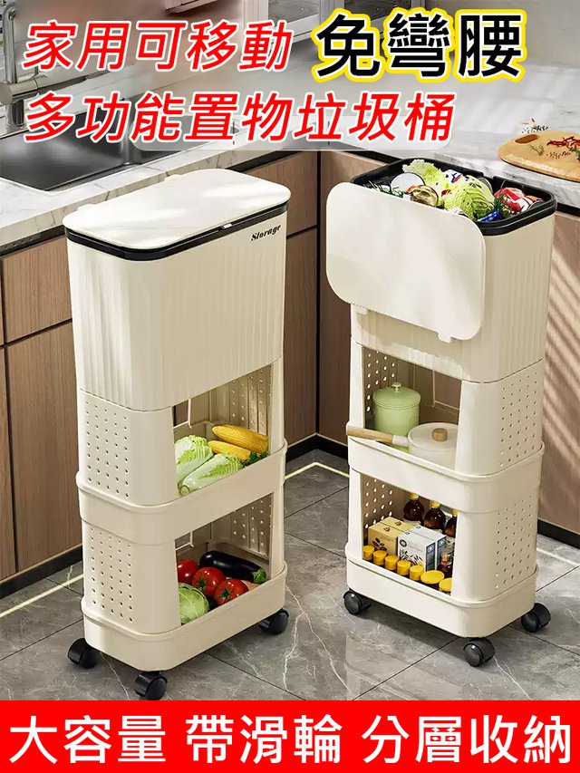 15分鐘前【不彎腰】家用可移動多功能置物垃圾桶 - 【超殺*贈20垃圾袋】1入組$279