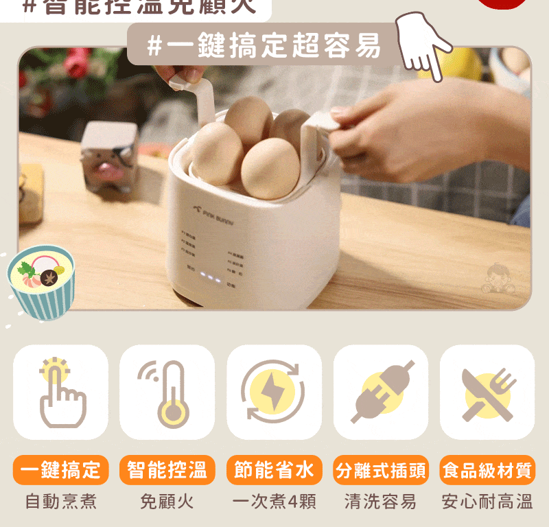 半小時前Pink Bunny智能煮蛋機智能控溫烹煮,營養美味輕鬆上桌 - Pink Bunny智能煮蛋機1入組 NT$1090